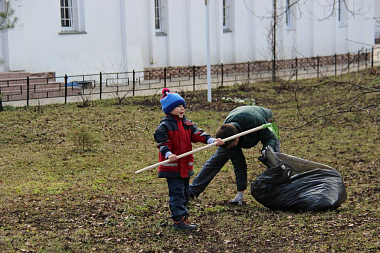 Нина Забегалова, педагог Воскресной школы, считает: «То, что на субботнике родители трудятся во славу Божию вместе с детьми, считаю самым эффективным средством воспитания, так как личный пример напрямую влияет на формирование личности ребенка».