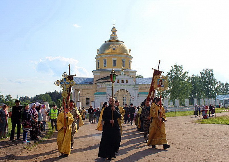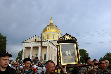 Накануне вечером на Великорецком подворье Свято-Трифонова мужского монастыря г. Кирова состоялась торжественная встреча чтимой иконы святителя Николая Чудотворца. Приветствуя паломников, из села выдвинулся встречный малый крестный ход, возглавляемый наместником Великорецкого подворья Трифонова монастыря архимандритом Федором (Рулевым).