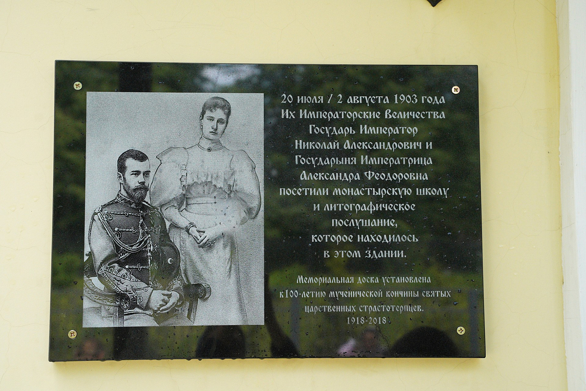 27 мая 2019 года на здании монастырской православной школы Свято-Троицкого Серафимо-Дивеевского женского монастыря была открыта мемориальная доска, на которой указано, что 2 августа 1903 года Их Императорские Величества государь император Николай Александрович и государыня императрица Александра Феодоровна посетили монастырскую школу и литографический корпус, находившийся в этом здании.