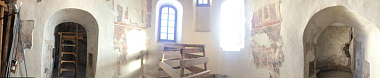 Подрядной организации предстоит восстановить фундаменты, укрепить кирпичную кладку, выполнить демонтаж дощатых полов и провести отделочные работы. Кроме того, будет укреплена фресковая живопись храма.
