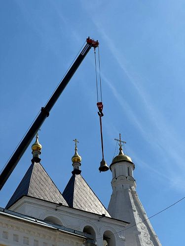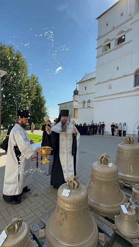 16 августа 2024 года в Введенском Владычнем женском монастыре Серпуховской Введенский Владычний женский монастырь Серпухова по благословению правящего архиерея, архиепископа Подольского и Люберецкого Аксия, благочинный монастырей Подольской епархии, наместник Вознесенской Давидовой пустыни игумен Сергий (Куксов) совершил чин освящения колоколов.