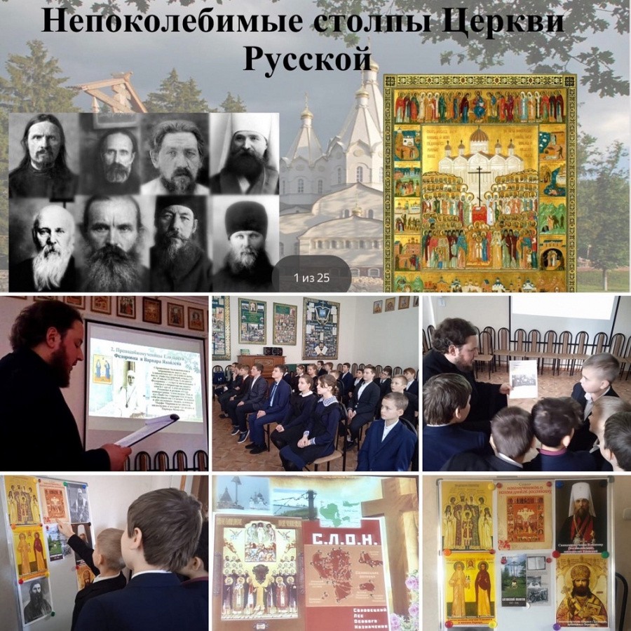 Одно из занятий состояло из нескольких частей. После просмотра фильма о подвиге духовенства и мирян в первые годы террора, отец Иоанн обратился к детям с призывом не прерывать связь поколений и всегда в своих молитвах и памяти представлять то тяжелое время.
