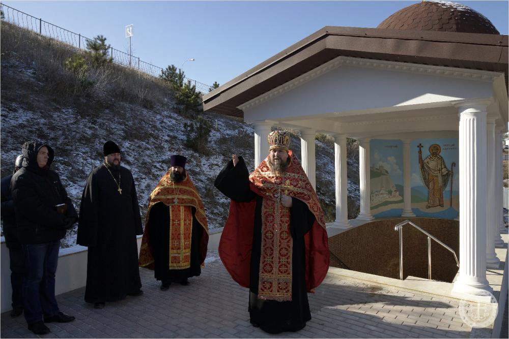 По окончании молебна на территории комплекса состоялось освящение источника с купелью в честь мужа апостольского священномученика Климента Римского. Чин освящения совершил благочинный Севастопольского округа протоиерей Сергий Халюта. Купель воздвигнута на месте обретенного в наши дни древнейшего источника, входившего в систему родников, питавших Херсонес и окрестности с античных времен. Климент Римский, проповедовавший в ссылке близ Херсонеса в I веке по Р.Х. и принявший здесь мученическую кончину, под своим омофором промыслительно объединил мучеников первохристианских и новомучеников и исповедников последних времен.