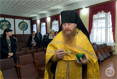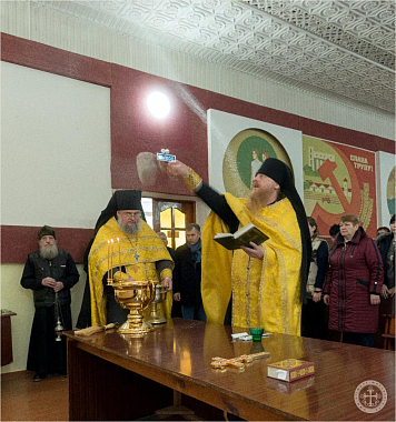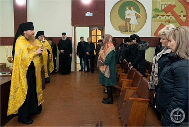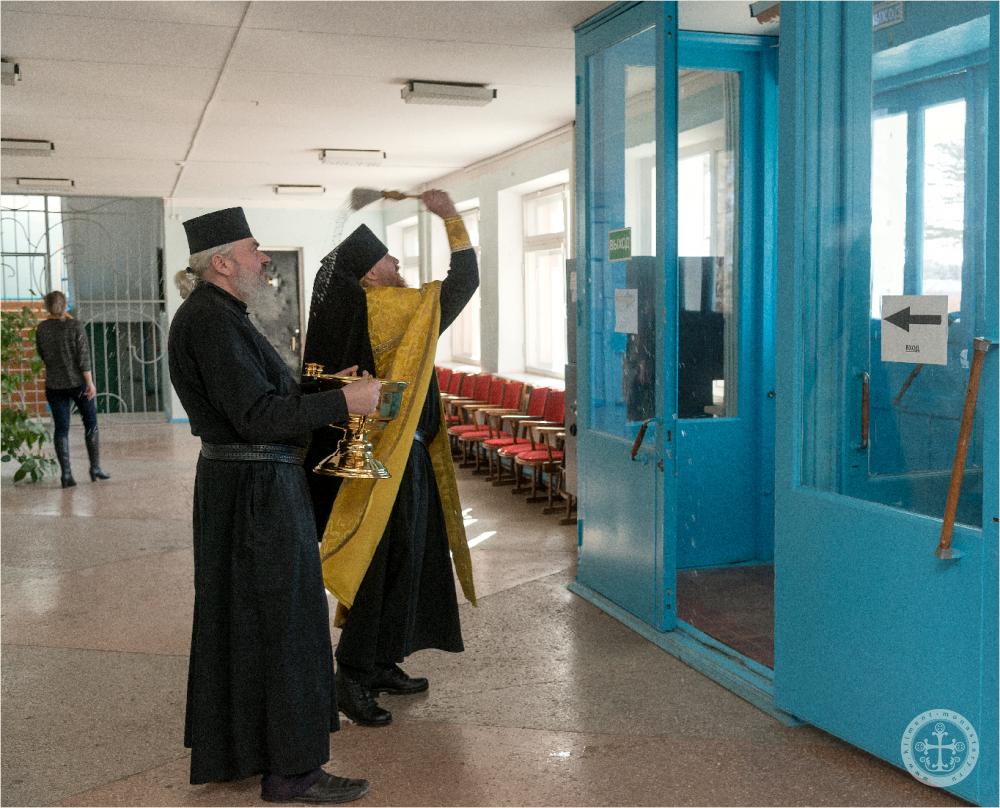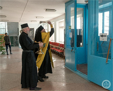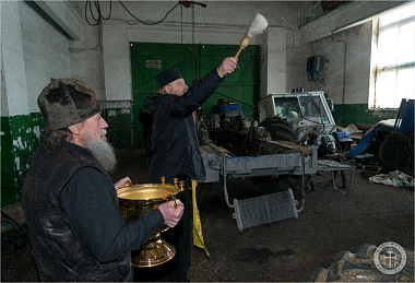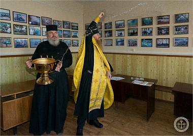 По окончании молебна отец Авель обратился со словом к присутствовавшим сотрудникам, после чего окропил всех святой водой.
