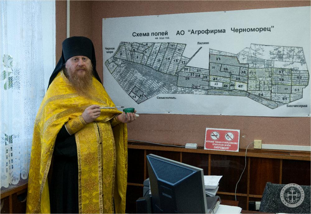 На молебне в административном здании присутствовало руководство АО «Агрофирма "Черноморец"» в лице директора К.В. Гацоева, главного агронома Р.В. Сибирцева и других лиц руководящего звена предприятия.