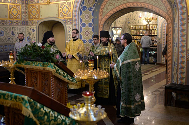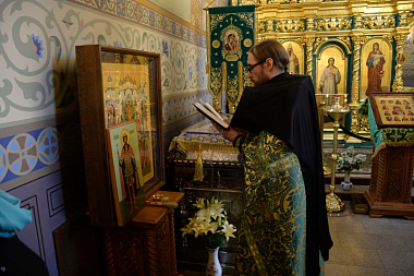 В завершение настоятель и братия монастыря также почтили память преподобного Евфимия, отслужив молебен с акафистом у раки с его честными мощами в Спасо-Преображенском соборе.