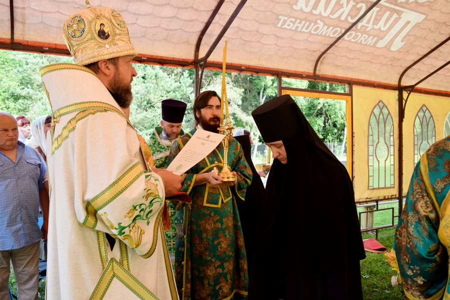 По окончании богослужения епископ Порфирий вручил благодарности всем, кто потрудился на благо строящейся обители и поздравил сестер и паломников с престольным праздником. Затем архиерей обратился к присутствующим со словом назидания, в заключение которого преподал всем архипастырское благословение.