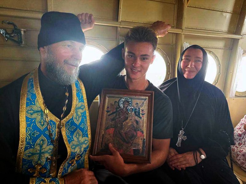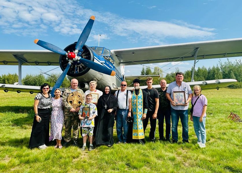 Во время воздушного крестного хода в самолете находились святыни Мироносицкого монастыря: Крест с мощами святых угодников Божиих, икона Богоматери «Всецарица», память которой Церковь отмечает в этот день, другие иконы.