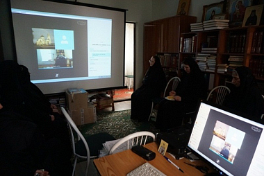 В этот же день состоялся очередной телемост с Ново-Тихвинским женским монастырем г. Екатеринбурга: матушка Неонилла и сестры слушали беседу духовника схиархимандрита Авраама. Это было продолжение беседы прошлого воскресенья на тему Торжество Православия, а затем последовали ответы батюшки на вопросы монашествующих о Великом посте. Эти беседы всегда приносят сестрам большую пользу, отметила именинница.