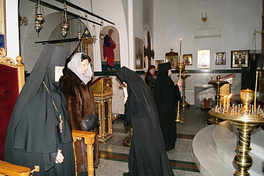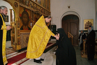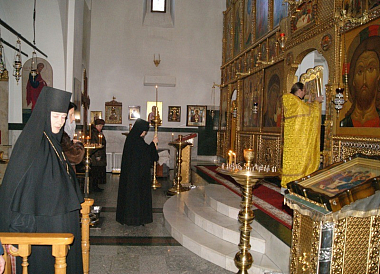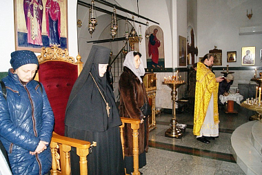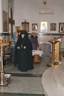 В этот день Ее Высокопреподобие причастилась за Литургией, которую совершили клирики обители протоиерей Олег Криволап и иерей Никифор Некрылов под византийское пение сестринского хора.