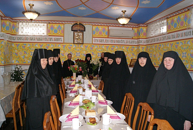 В завершение праздничной трапезы насельницы исполнили «Благоденствие» игумении Неонилле.
