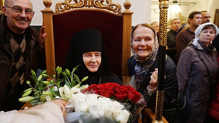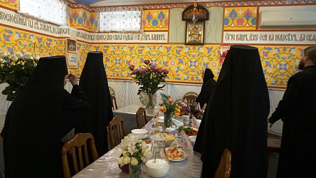В празднично украшенной трапезной сестры пропели «Многая лета», прочли посвященное матушке четверостишие.