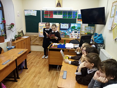 В конце февраля в «Доброй школе на Сольбе» при Николо-Сольбинском женском монастыре прошла неделя науки. Во всех классах учителя провели серию тематических уроков. Ученики нарисовали плакаты и повесили их в холле школы. А девочки из 4-го класса поделились своими впечатлениями от опытов, которые они проводили.