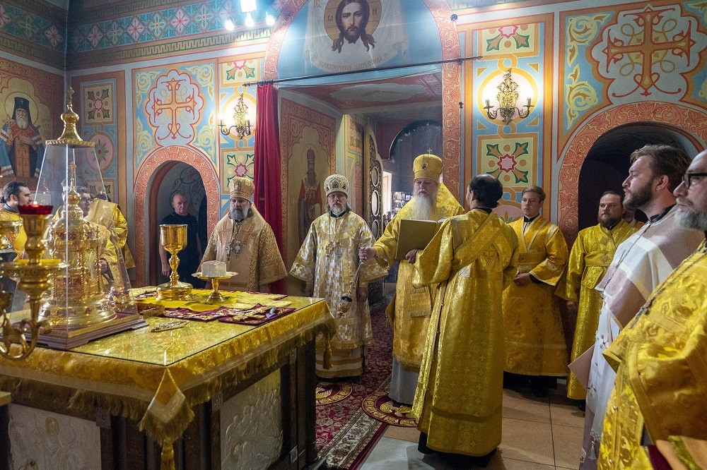 Божественную литургию в монастыре в этот день возглавил митрополит Рязанский и Михайловский Марк в сослужении епископа Скопинского и Шацкого Питирима и епископа Волжского и Сернурского Феофана, который был непосредственным свидетелем и участником процесса возрождения старинной обители после долгих лет забвения, посвятив этому богоугодному делу около 20 лет жизни.