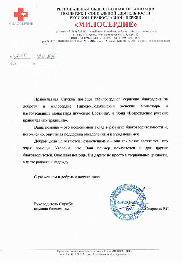При содействии фонда «Возрождение русских православных традиций» пасхальные куличи и яйца из Николо-Сольбинского монастыря были переданы в Службу помощи бездомным при общественной организации «Милосердие».