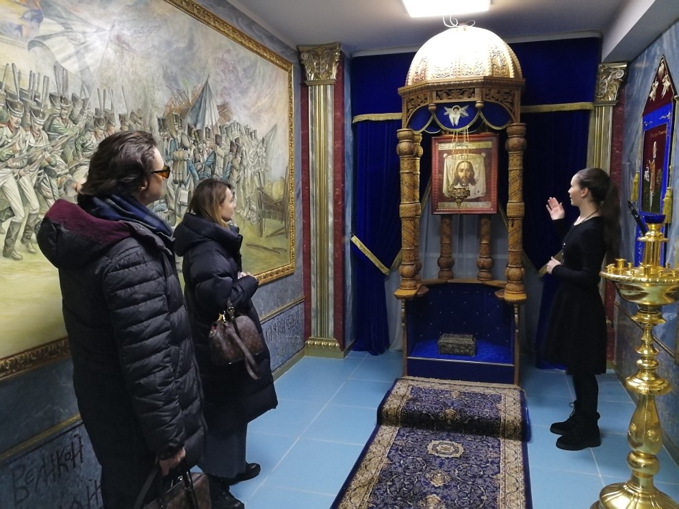 Воспитанницы «Отрады» организовали для гостя небольшой концерт – спели песню «Улетай» из оперы А.П. Бородина «Князь Игорь», и станцевали хоровод «Зимние узоры». Потом показали пансион с келиями и библиотекой, Православную гимназию с оборудованными классами и актовым залом. Показали свои костюмерные с аккуратными рядами платьев и туфель, где все подписано и разложено так, чтобы можно было легко и быстро найти все, что нужно. Показали духовно-просветительский центр «София» – с детскими творческими студиями, большим конференц-залом и интерактивным музеем «Малоярославец – город двух великих побед», созданным при финансовой поддержке Фонда президентских грантов.