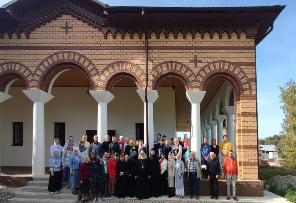 Величественное здание, в византийском стиле возводилось с 2018 года по проекту почившего архитектора Михаила Будкина. Новая постройка украшена открытой галереей с колоннадой по периметру и органично дополняет архитектурный комплекс обители.