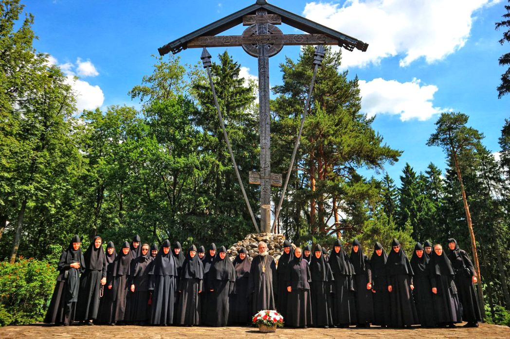 Вместе с настоятелем храма Новомучеников и Исповедников Российских на Бутовском полигоне протоиереем Кириллом Каледой сестры спели литию у Бутовского креста.