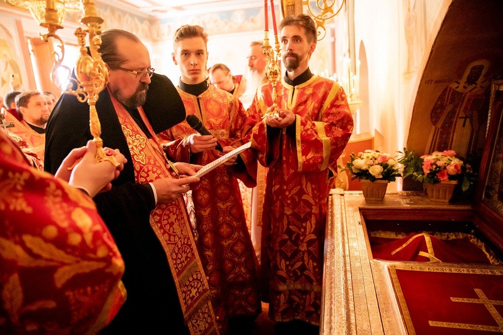 По окончании богослужения состоялось славление преподобному Пахомию Нерехтскому перед ракой с его святыми мощами.