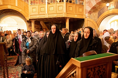 На Литургии кроме многочисленных гостей и паломников молились сестры святой обители, а также глава муниципального района города Нерехты и Нерехтского района Ирина Владимировна Воробьева.