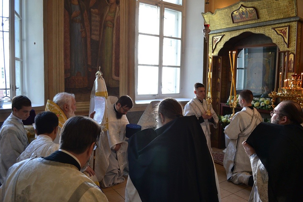 За богослужением владыка митрополит удостоил правом ношения камилавки клирика Спасо-Афанасиевского мужского монастыря иерея Димитрия Теплякова.