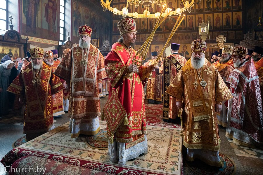 Предстоятелю Белорусской Православной Церкви сослужили: архиепископ Брестский и Кобринский Иоанн, епископ Туровский и Мозырский Леонид, епископ Пинский и Лунинецкий Георгий, ответственный секретарь Управления делами БПЦ протоиерей Андрей Волков, секретарь Витебской епархии протоиерей Владимир Резанович, секретарь Пинской епархии протоиерей Константин Балакай, клирики Пинской епархии.