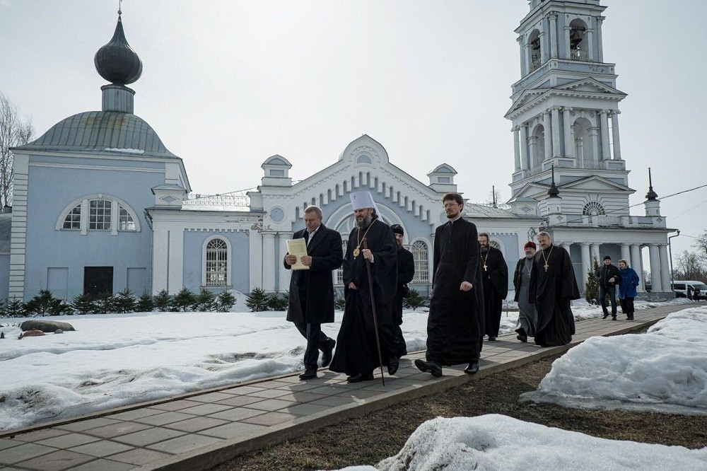 После подписания договора митрополит Амвросий с настоятелем архиерейского подворья – храма Введения во храм Пресвятой Богородицы иеромонахом Амвросием (Желябовским) осмотрел с берега остров, на котором впоследствии планируется восстанавливать Троицкий мужской монастырь.