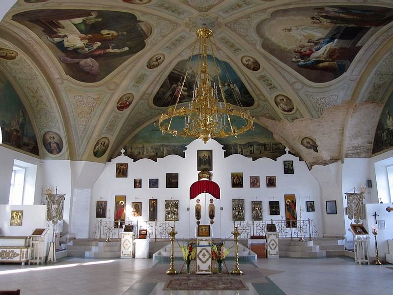 В октябре 1827 года к исполнению стенных росписей храма приступила артель Тимофея Медведева. Одновременно работали резчики над иконостасом, жертвенниками и престолами. «23 числа ноября резчики кончили резную работу для вновь строящейся церкви, за каждую работу мастеру Усольскому мещанину Константину Яковлеву Трубникову 1700», – отмечено в дневниковой записи.