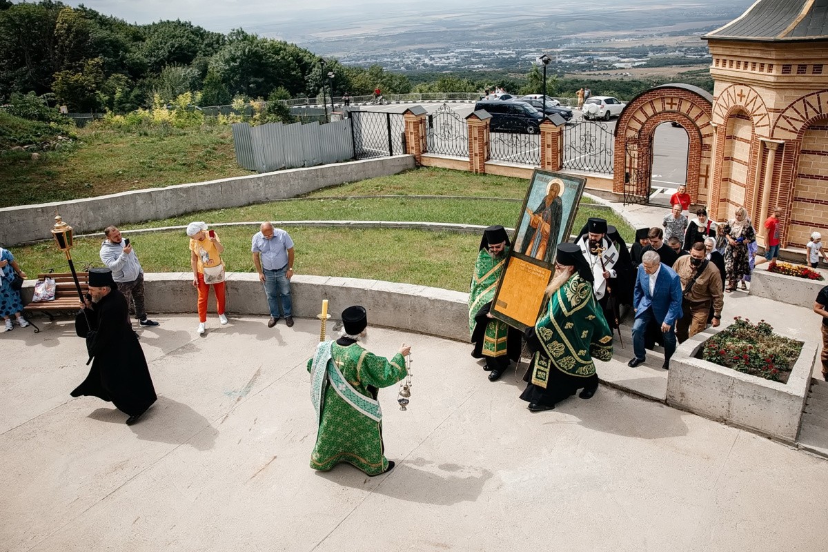Торжественную встречу святыни возглавил священноархимандрит обители архиепископ Пятигорский и Черкесский Феофилакт.