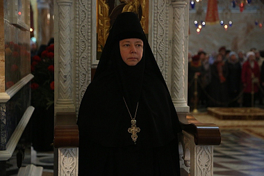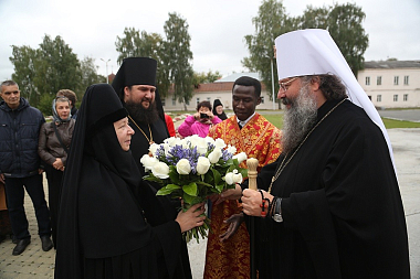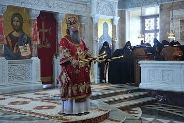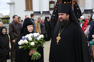 Его Высокопреосвященству сослужили: секретарь митрополита Екатеринбургского и Верхотурского иеромонах Кирилл (Корытко), наместник монастыря в честь Святых Царственных страстотерпцев на Ганиной Яме архимандрит Пимен (Адарченко), духовник Александро-Невской Ново-Тихвинской женской обители схиархимандрит Авраам (Рейдман), а также духовенство монастыря и епархии.