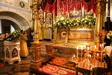 По окончании богослужения был отслужен молебен святителю Иннокентию и в честь праздника возглашено троекратное многолетие, после чего владыка Максимилиан обратился к присутствующим и поздравил всех с днем памяти Небесного покровителя и первого епископа Иркутского и всея Сибири чудотворца – святителя Иннокентия.