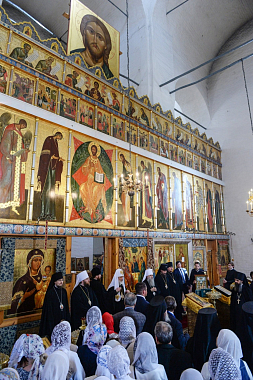 В верхнем храме Предстоятеля встречали насельники монастыря, преподаватели и учащиеся Вологодской духовной семинарии, прихожане и паломники. Наместник монастыря игумен Игнатий (Молчанов) приветствовал Святейшего Владыку и преподнес Его Святейшеству икону преподобных Димитрия и Игнатия Прилуцких.