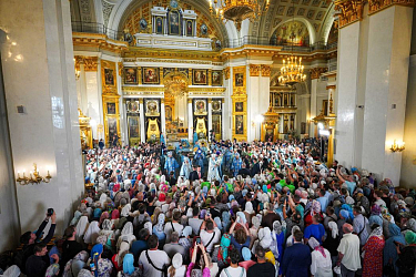 На сугубой ектении были вознесены особые прошения, Святейший Патриарх Кирилл прочитал молитву о Святой Руси.