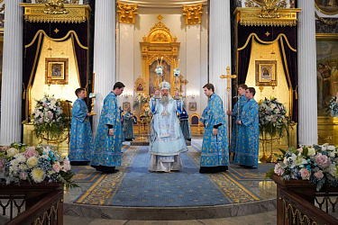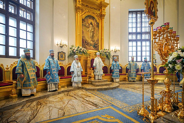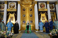 По окончании Литургии Святейший Патриарх Кирилл совершил славление празднику