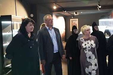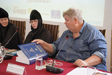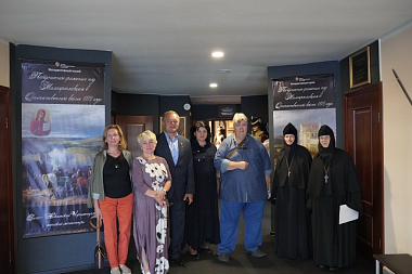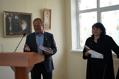 В завершение своего доклада Александр Васильевич преподнес игумении Нектарии и игумении Макарии от Федеральной национально-культурной автономии белорусов России по экземпляру изданной к 75-летию Победы книги «Республика-партизанка» об истории партизанского движения в Белоруссии в годы Великой Отечественной войны и еще несколько экземпляров этой же книги – в дар Свято-Никольскому Черноостровскому женскому монастырю.