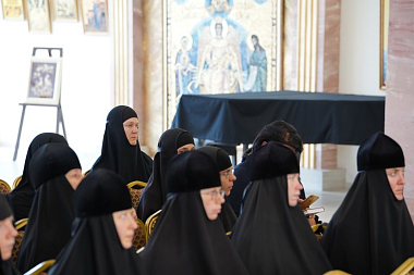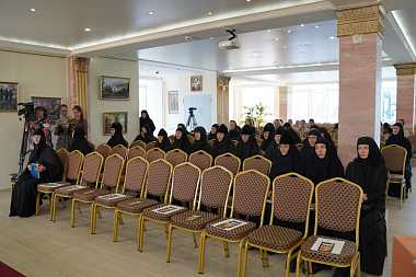 После приветственного слова участникам конференции вторая ее гостья зачитала стихи, посвященные приснопоминаемому духовнику Свято-Никольского Черноостровского женского монастыря схиархимандриту Михаилу (Балаеву), который в годы Великой Отечественной Войны прошел как участник боев – танкист – от вяземской земли до самого Берлина.