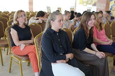 Ирина Владимировна рассказала о планах по выходу на экраны широкоформатного фильма «Подольские курсанты», премьера которого была перенесена в связи с пандемией новой короновирусной инфекции как минимум на год, и показала двухминутный трейлер фильма. Ирина Бабакова также поделилась своими впечатлениями от общения с воспитанницами пансиона «Отрада» и студентами Центра православных медиа в Православной молодежном центре «Златоуст» и в завершение выразила надежду, что сестры Свято-Никольского Черноостровского женского монастыря, студенты Центра православных медиа и матушки игумении выскажут отзывы о тексте готовящейся к изданию книги и помогут в создании иллюстраций для нее.