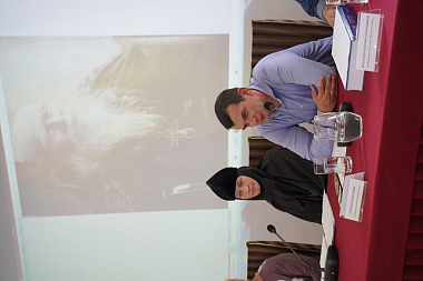 После перерыва на обед конференция была продолжена в формате круглого стола в визуальной студии Центра православных медиа, модератором которого выступила Л. С. Череховская, директор ЦПМ РГСУ. Режиссер М. Э. Кочнева провела мастер-класс для студентов ЦПМ «Основы создания видеосюжета», разбирая ключевые моменты работы на примере сюжетов с исторической направленностью. Одна из центральных тем, затронутых в дискуссии, – способы сделать видеосюжет по исторической или духовно-нравственной тематике интересным для молодежной аудитории.