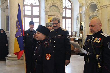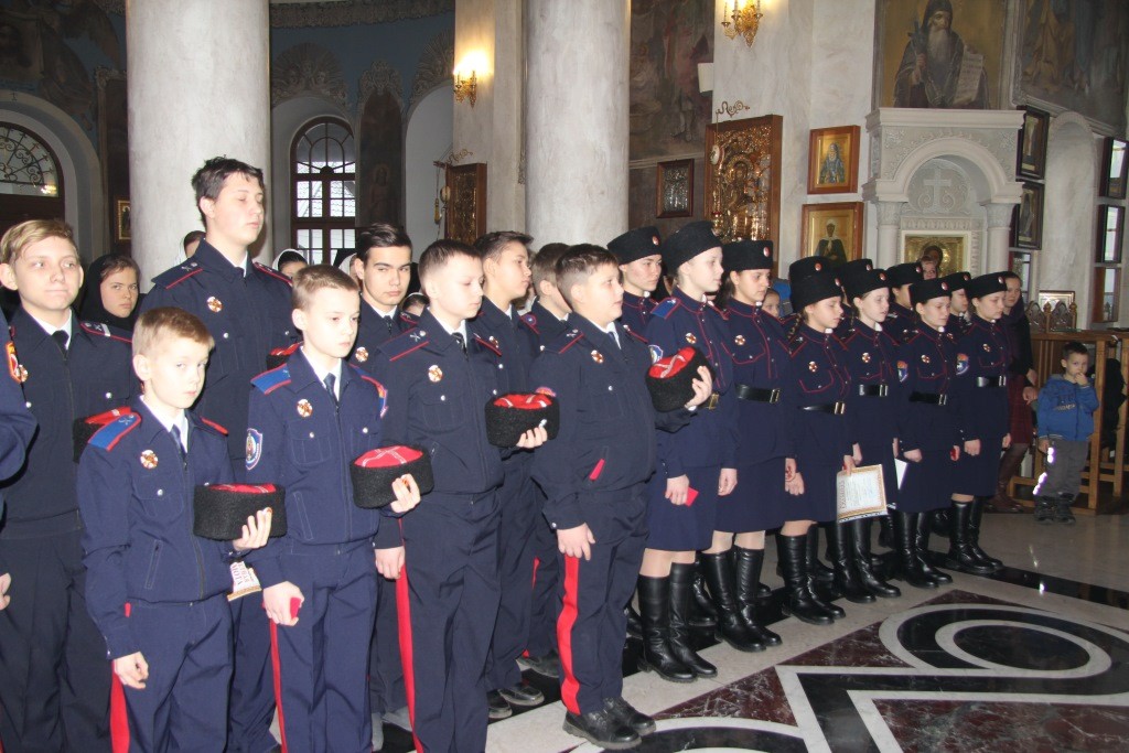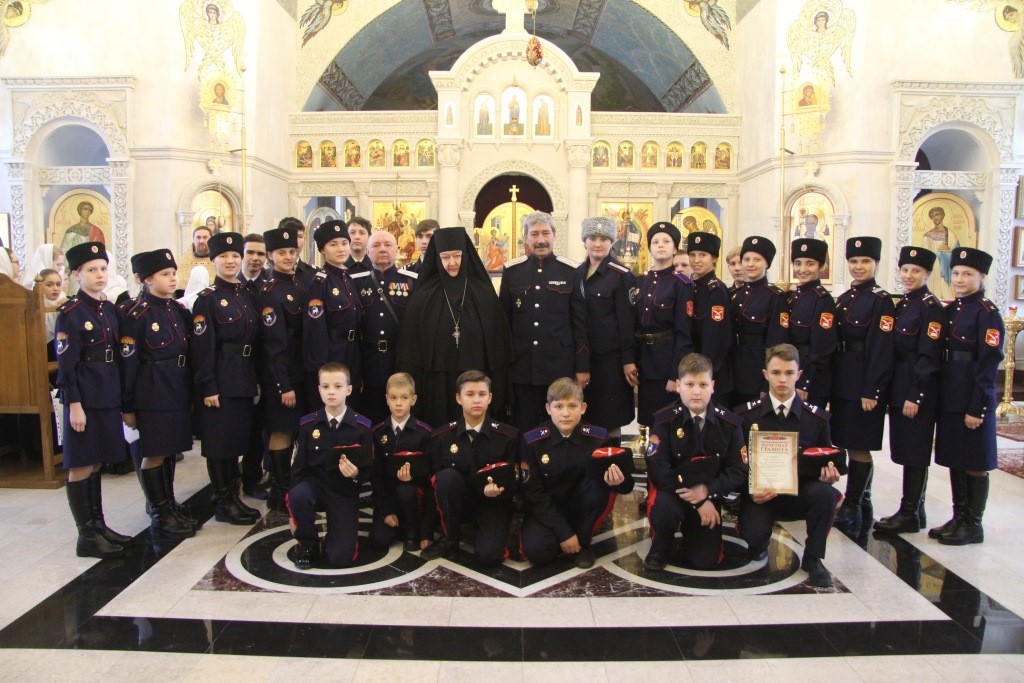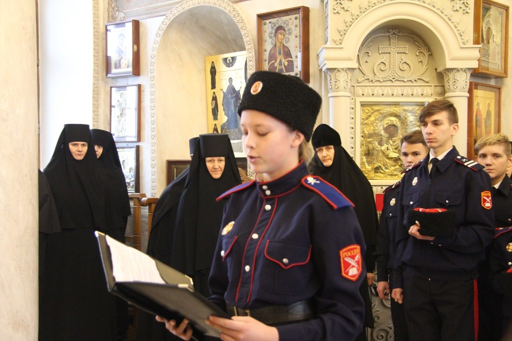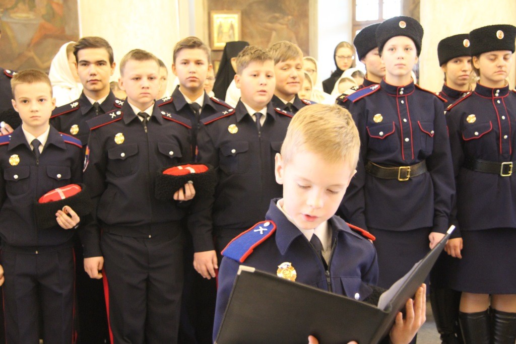 Пять девочек, четыре из которых – воспитанницы детского православного пансиона «Отрада», и четыре мальчика приносили торжественное обещание служить Отечеству, казачеству и вере православной и по первому зову выступить на защиту перед крестом и Евангелием в присутствии настоятельницы Свято-Никольского Черноостровского женского монастыря игумении Николаи (Ильиной), насельниц обители, отца Владимира Матвейчука, воспитанниц детского православного пансиона «Отрада», прихожан и гостей, атамана и подхорунжего Малоярославецкого хуторского казачьего общества «Хутор Малоярославецкий».