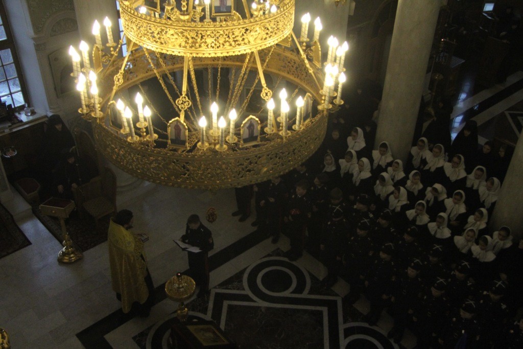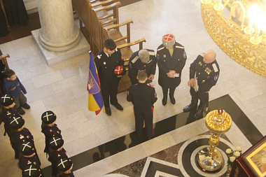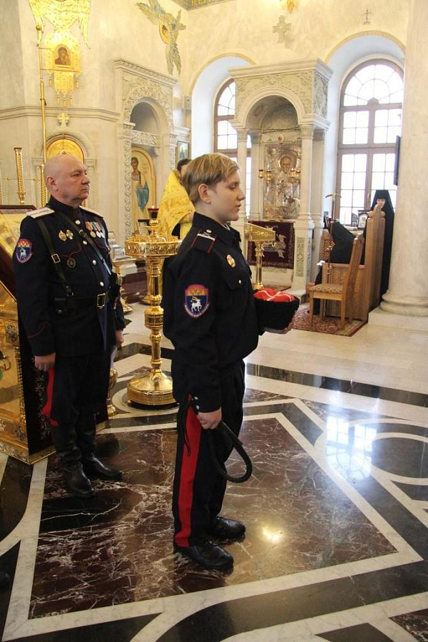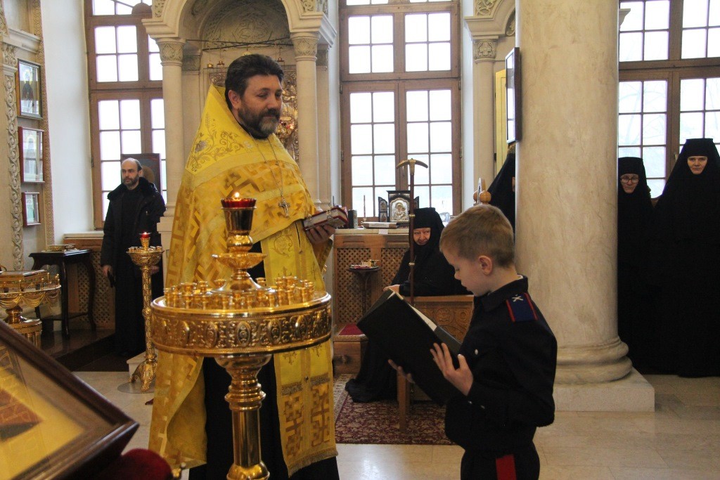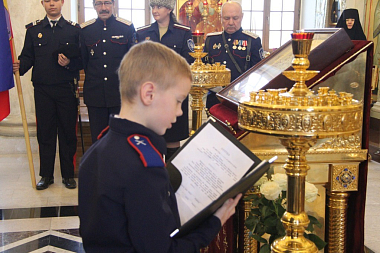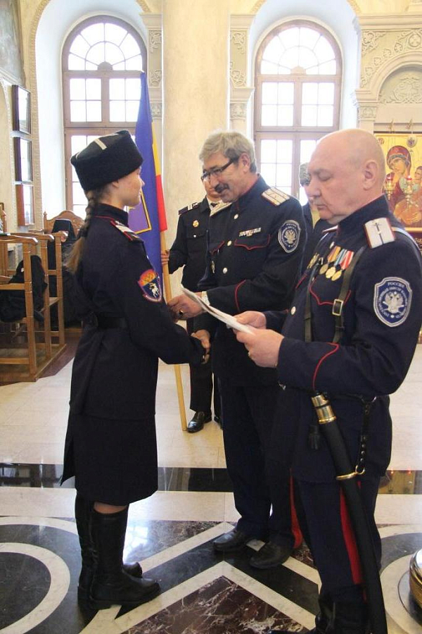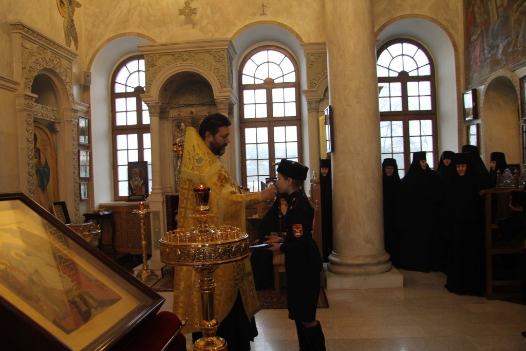 Пять девочек, четыре из которых – воспитанницы детского православного пансиона «Отрада», и четыре мальчика приносили торжественное обещание служить Отечеству, казачеству и вере православной и по первому зову выступить на защиту перед крестом и Евангелием в присутствии настоятельницы Свято-Никольского Черноостровского женского монастыря игумении Николаи (Ильиной), насельниц обители, отца Владимира Матвейчука, воспитанниц детского православного пансиона «Отрада», прихожан и гостей, атамана и подхорунжего Малоярославецкого хуторского казачьего общества «Хутор Малоярославецкий».