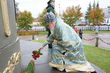 По окончании Литургии начался объединенный исторический крестный ход приходов города и военно-исторических клубов от монастыря к Монументу Славы и памятнику полковому священнику отцу Василию Васильковскому, где были отслужены лития памяти павших в Малоярославецком сражении воинов, благодарственный молебен за победу, и прошла торжественная церемония с возложением цветов.