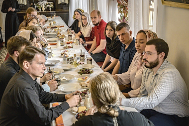 Первый день начался с посещения ансамбля Успенского Псково-Печерского монастыря. Группу студентов из пяти московских вузов принял в древней русской обители митрополит Псковский и Порховский Тихон.