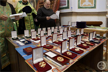По прочтении Святого Евангелия Крымский архипастырь произвел награждения священства, клириков, монашествующих и мирян Симферопольской епархии богослужебными знаками отличия, орденами и грамотами.