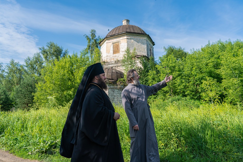 Священноархимандрит обители в сопровождении наместника Старицкого Успенского монастыря игумена Дамаскина (Леонова) осмотрел общее состояние церкви, встретился с хозяином дома, который находится рядом с храмом. Сергей Чуркин, местный житель, охранял храм в течение нескольких лет и многое, что было в его силах, сделал для приведения в порядок территории храма. Владыка поблагодарил его за неравнодушное отношение к Дому Божию.