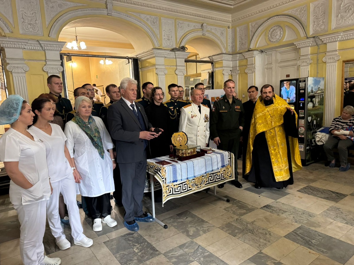 В Военно-медицинской академии и Мариинской больнице совершены молебны с акафистом святителю Луке, а раненым воинам, находящимся на лечении, подарены иконы и масло, освященное на мощах святителя.