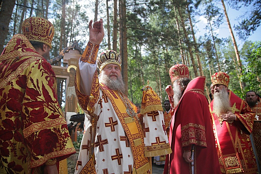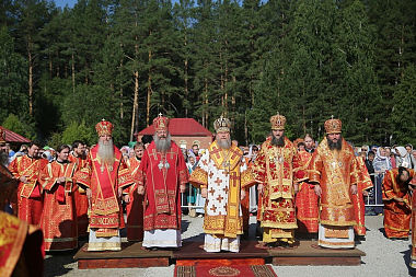 Богослужение возглавил митрополит Астанайский и Казахстанский Александр. Его Высокопреосвященству сослужили митрополит Екатеринбургский и Верхотурский Кирилл, епископ Исилькульский и Русско-Полянский Феодосий, епископ Каменский и Алапаевский Мефодий, епископ Среднеуральский Евгений, викарий Екатеринбургской епархии, и духовенство Екатеринбургской и Каменской епархий.