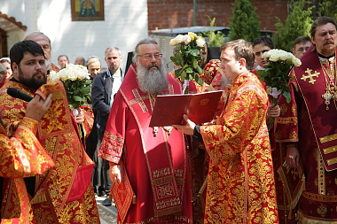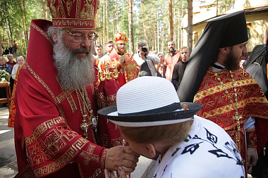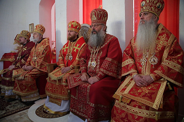 Его Высокопреосвященству сослужили епископ Каменский и Камышловский Мефодий, епископ Шадринский и Далматовский Владимир, епископ Нижнетагильский и Невьянский Евгений, епископ Серовский и Краснотурьинский Алексий, епископ Алапаевский и Ирбитский Леонид, старший духовник Московской епархии протоиерей Валериан Кречетов, настоятель обители игумен Моисей (Пилатс), сонм духовенства Екатеринбургской митрополии.