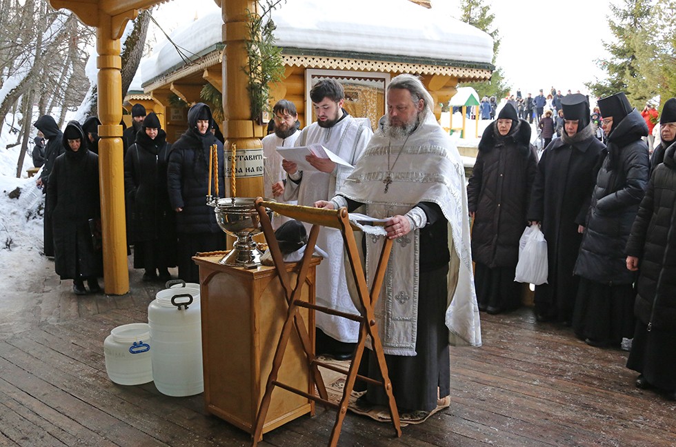 В крещенский праздник великое водоосвящение прошло на всех дивеевских источниках: ночью освятили источники преподобной Александры и Иверский, днем – преподобного Серафима Саровского, Казанский, Пантелеимоновский, Умиления и Явленный.