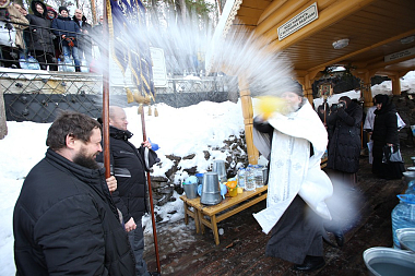 Чин освящения совершался очень торжественно: крестным ходом участники водоосвящения подходили к источнику, где служился молебен.