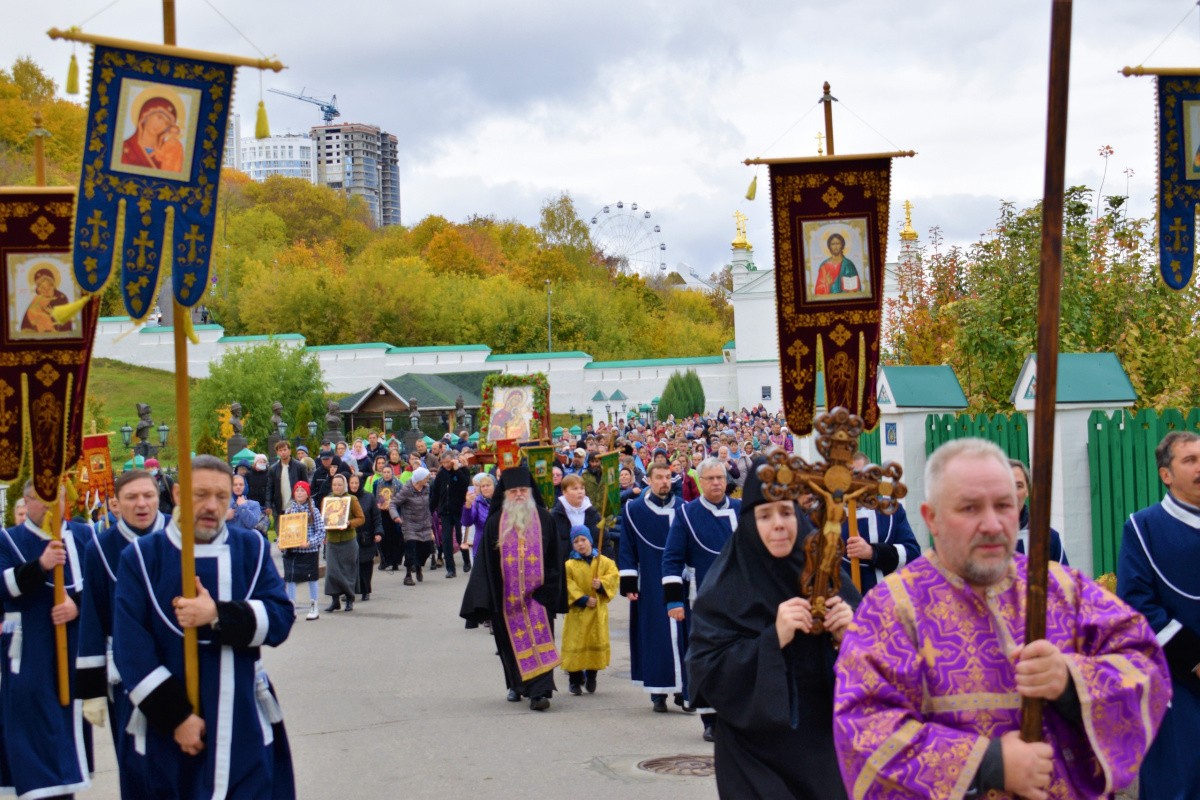 Перед началом крестного хода в Крестовоздвиженском монастыре Нижнего Новгорода была совершена Божественная литургия. От обители по запланированному маршруту шествующие проследовали до Вознесенского Печерского мужского монастыря, где были встречены братией обители. В Успенском храме Печерского монастыря состоялся молебен.